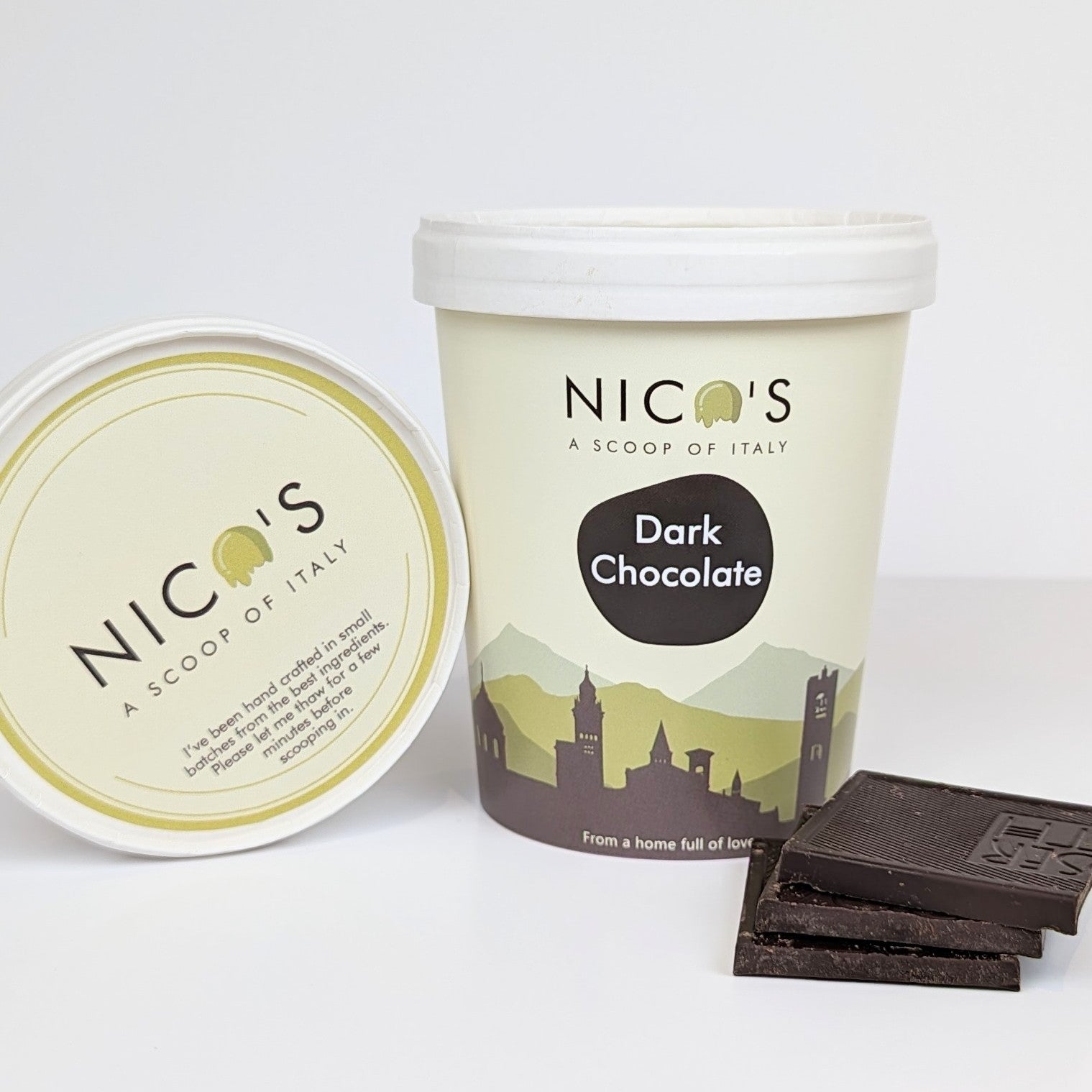 Ingredients: Fresh Milk (55%), Fresh Cream (Milk), Sugar, Dark Chocolate (Cocoa Mass (70%), Cane Sugar, Cocoa Butter, Vanilla Extract), Dextrose, Organic Cocoa (8%). Emulsifier: Mono and Diglycerides of Fatty Acids. Thickener: Tara Gum.