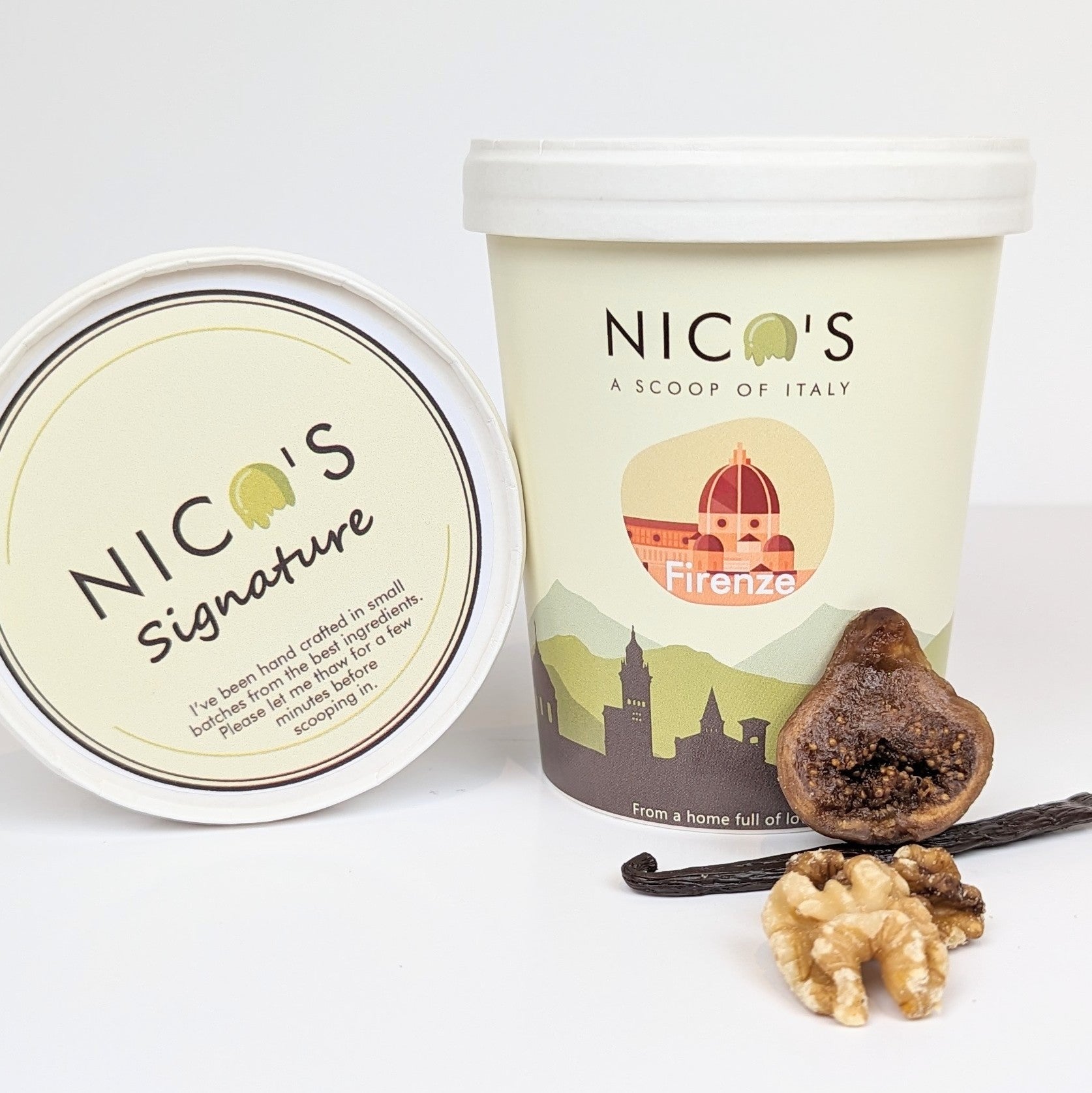 Ingredients: Fresh Milk (58%), Fresh Cream (Milk), Sugar, Fig Sauce (Figs, Sugar, Dextrose), Dextrose, Caramelised Walnuts (Walnuts, Sugar), Milk Powder (Milk, Vitamin A, Vitamin D), Dark Chocolate (Cocoa Mass (70%), Cane Sugar, Cocoa Butter, Vanilla Extract), Vanilla Pod. Emulsifier: Mono and Diglycerides of Fatty Acids. Thickener: Tara Gum.