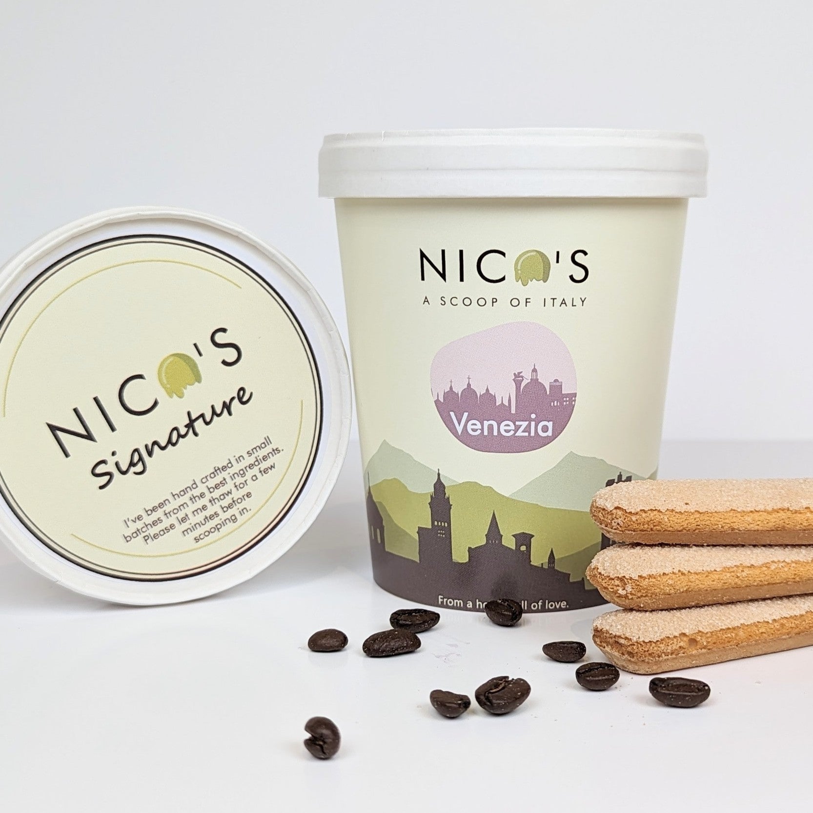 Inspired by one of Venice most famous desserts, Tiramisú. A velvety custard with Mascarpone cheese, layered with Savoiardi biscuits and a homemade chocolate and coffee sauce.